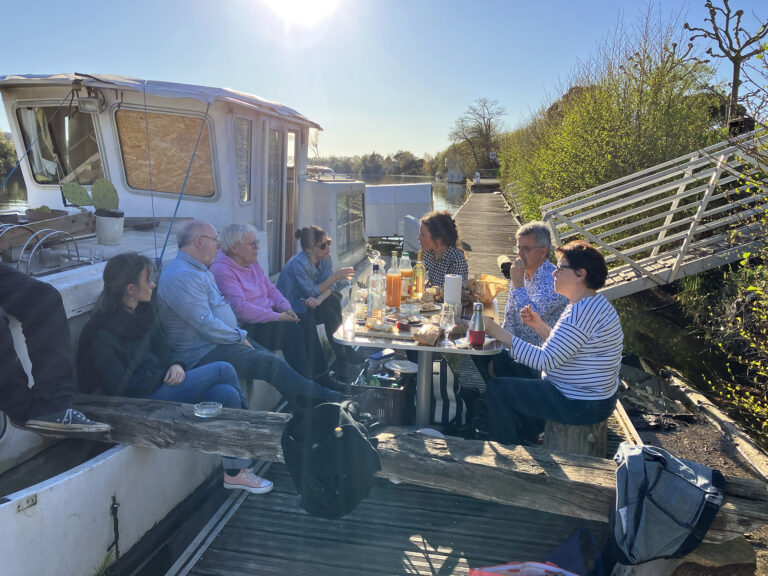 Le groupe de commanditaires, constitué d’habitant·es de trois communes, pose sur le Pont Rouchaud.