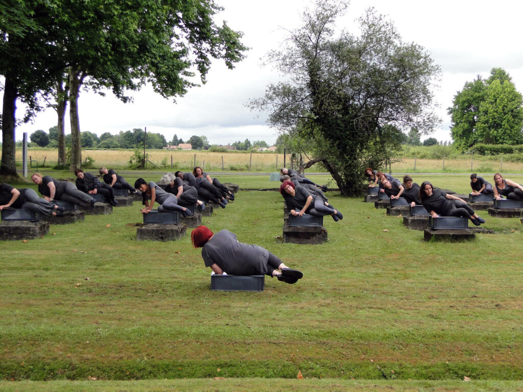Filmé dans le camp de Gurs, en Béarn, construit en 1939 pour accueillir des Républicains fuyant l’Espagne, l’entraînement tourne à l’absurde au fil des séquences faisant ainsi prendre à ces corps lourds et maladroits un tout autre sens. Les histoires de ces femmes, parfois douloureuses, se voient transcendées à travers ces actes de poésie commune.