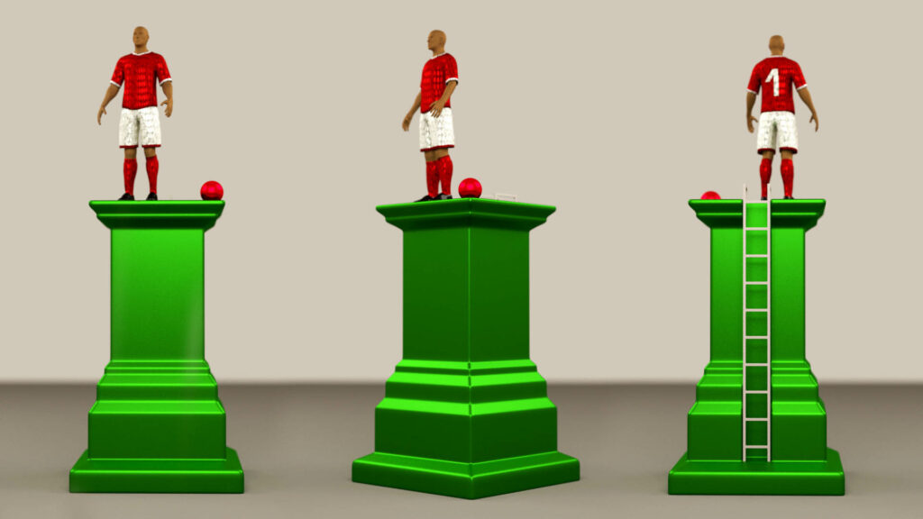 Intrigués par les robots footballeurs de la Robocup et amusés par le déploiement de technologie et d’intelligence dont l’unique finalité est d’imiter les humains dans une événements sportif pouvant paraitre inutile, les artistes décident de parcourir le chemin inverse. Dancing Sculpture est donc composé de trois danseurs de hip-hop en tenue de footballeur se relayant sur un grand socle recouvert d’une laque métallisée verte évoquant la pelouse d’un terrain de sport. Leur chorégraphie est envisagée comme un rituel, un protocole pouvant être réactivé à l’occasion de futures Robocup avec des danseurs et danseuses des différents pays d’accueil.