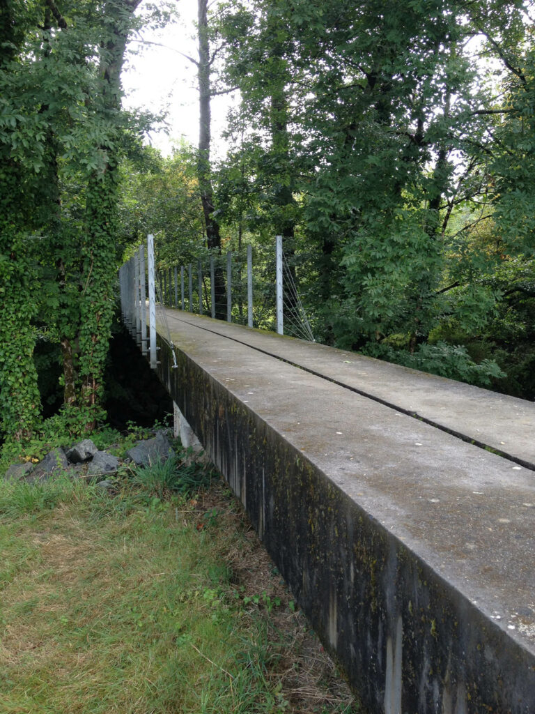 La passerelle s’appréhende comme un signal dans le paysage, invitation à aller découvrir ce qui existe de l’autre côté de la Loue.