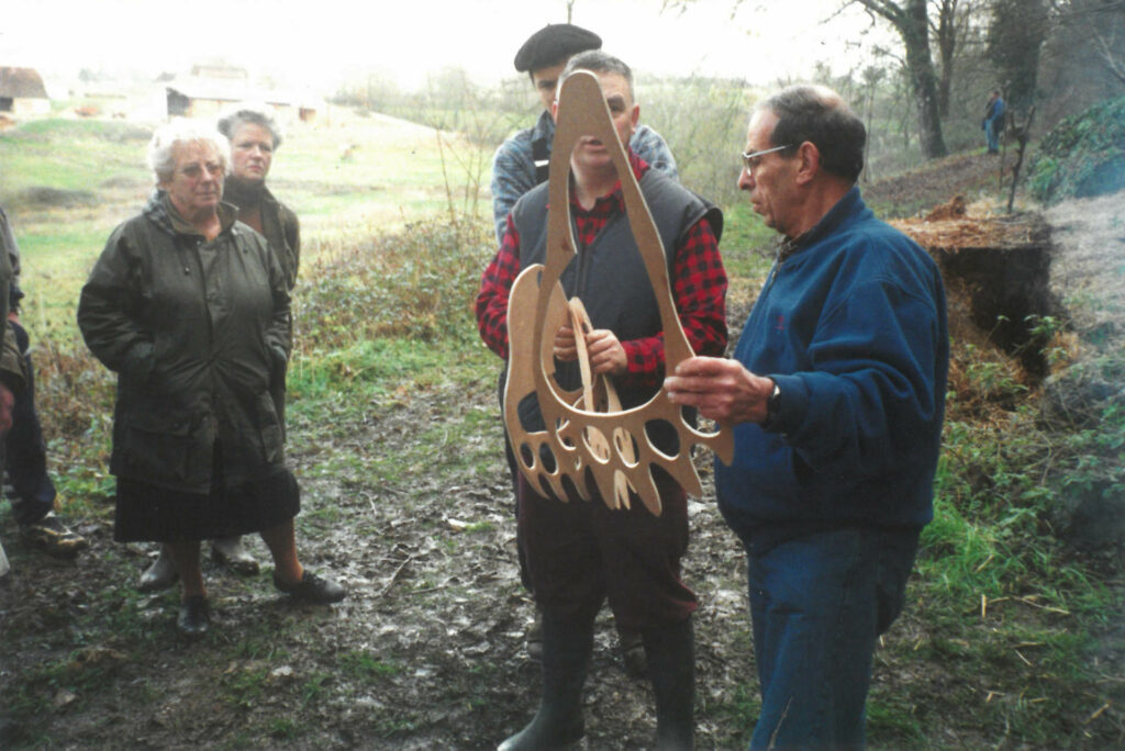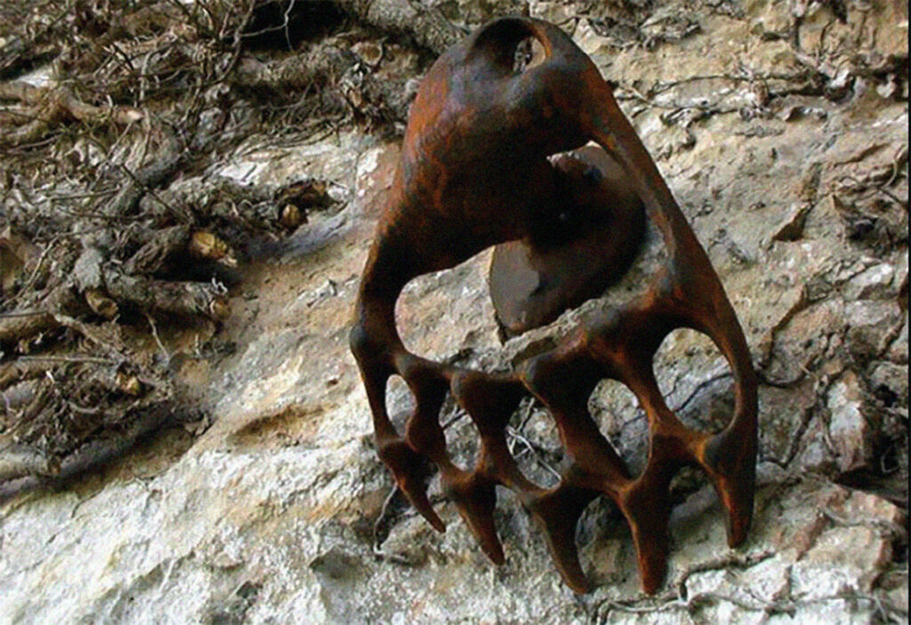 C’est l’artiste Jean-Luc Brisson qui est choisi pour répondre à cette commande. Interpellé par une improbable découverte d’ossements de pattes d’ours dans les grottes, il a l’idée de réaliser des moulages de ceux-ci et de les sceller dans la roche à divers points du parcours. En frappant ces heurtoirs contre le rocher, les promeneuses et promeneurs peuvent éprouver par l’écoute la nature de chacun des sites.