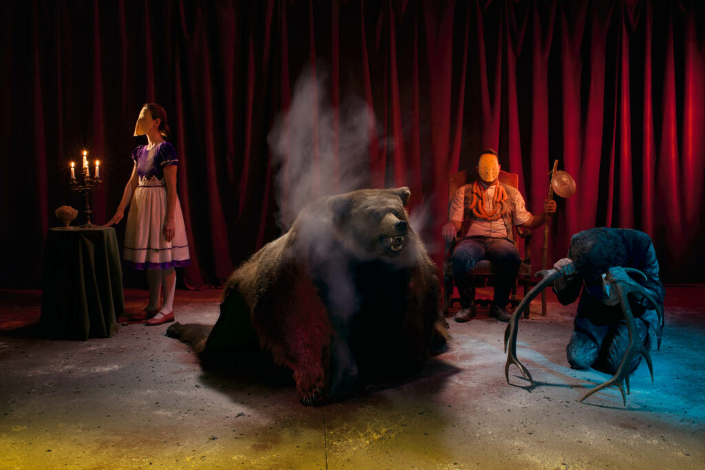 C’est la photographe Delphine Balley qui est choisie pour répondre à la commande. Accompagné par l’artiste, le groupe de commanditaires égrène des événements passés ou actuels d’Orthez qui leur paraissent refléter la capacité de la ville à intégrer de nouveaux groupes d’arrivants. De son côté, profondément intéressée par les croyances et traditions régionales, l’artiste se plonge dans les différents univers des histoires et anecdotes racontées par les commanditaires.