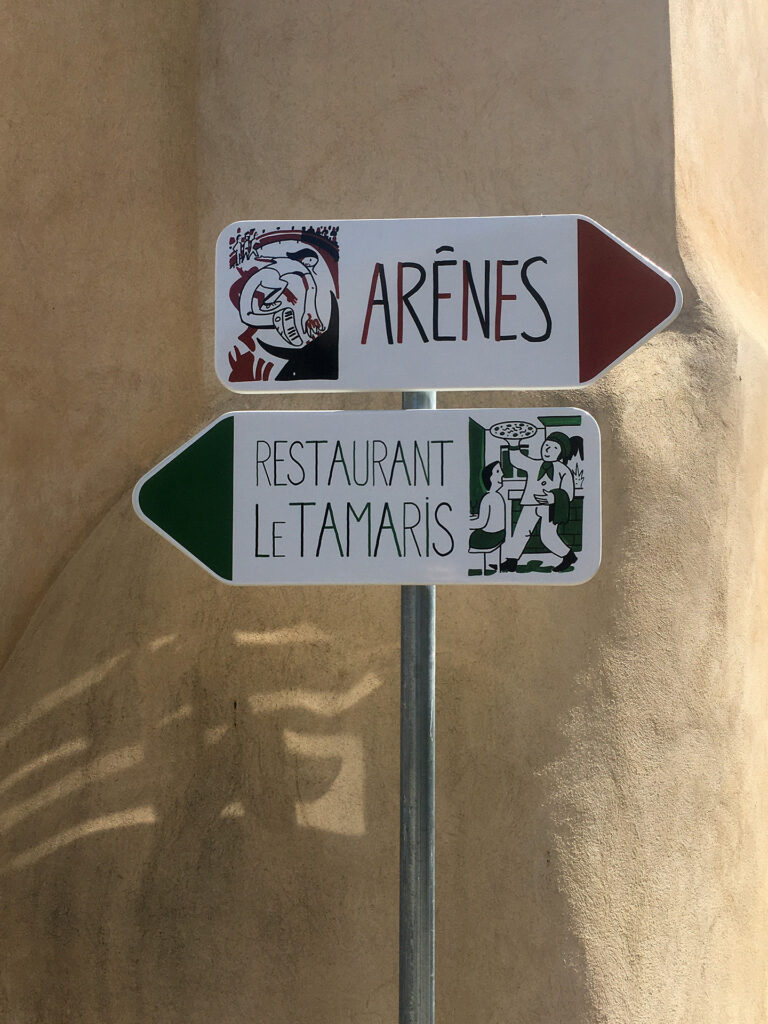 François Boisrond, La signalétique du Cailar, 1996, réhabilitation 2020, ensemble de signalétique, Le Cailar (Gard) © Jean-Marie Bénézet
