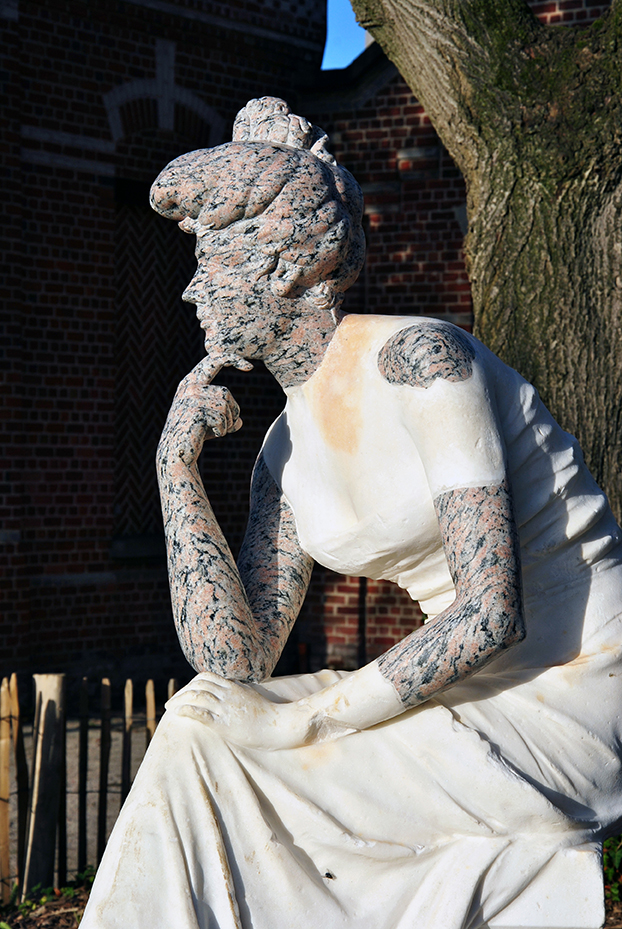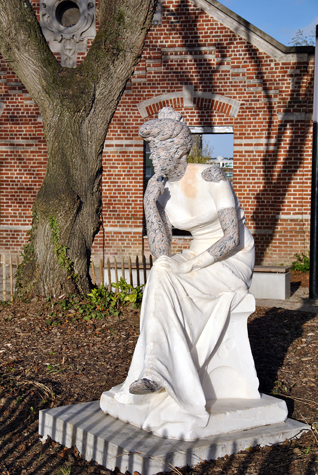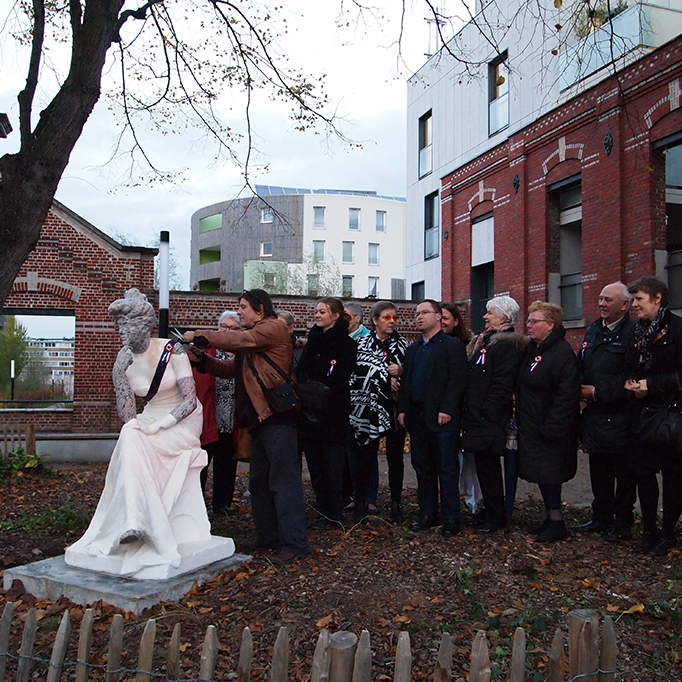 En réponse à la commande, l’artiste a proposé un espace de rencontre constitué de plusieurs éléments symboliques du quartier. Le premier est une statue de style classique de Georges Van der Straeten faisant anciennement partie du parc de la ville et qui fut détériorée. En partant de légendes locales autour d’un personnage du quartier, la Tigresse, l’artiste l’a restaurée en différenciant les nouveaux éléments, avec la couleur et les matériaux, afin qu’elle retrouve sa notoriété. La seconde partie du projet est une table en pierre et un boulodrome. Sur la table, des textes écrits par les commanditaires et des photographies historiques du quartier ont été gravés. Le boulodrome est recouvert d’une matière semblable au toit des anciennes usines.