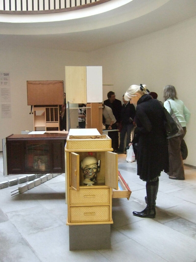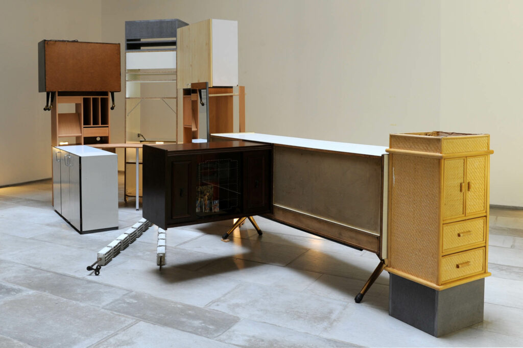 2. Le Zupsitut renvoie à un cabinet de curiosité mobile constitué de sept parties, comparable à un meuble collage mémoire de 40 ans de design populaire. Temporairement conservée puis présentée au Musée Basque et de l’histoire de Bayonne, cette œuvre appartient aujourd’hui aux collections du FRAC MECA.